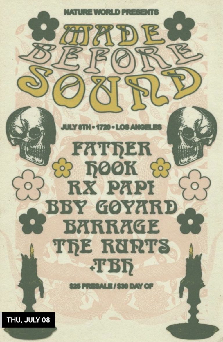 Nature World is back with another incredible mash up of hip hop and punk, this time with the event “Made Before Sound” which features performances by Father, Hook, RX Papi,
