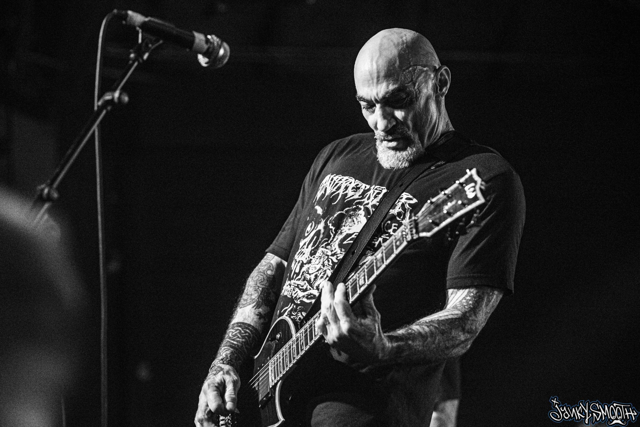 As soon as Cold As Life took the stage, I recognized vocalist Jeff Gunnells from his mugshot photo, but I was absolutely shocked to see him pick up a guitar as I had no idea he played both roles in the band before this show started. The sort of animated spirit he brings to the stage as a frontman while playing guitar simultaneously is a level of energy that we rarely see from hardcore or any punk bands nowadays. This element alone made their performance feel like you were witnessing something incredibly rare from a world that no longer exists nowadays. The fans that were dedicated to hitting a stage dive that evening didn’t let this stop them from doing so, and Gunnells somehow managed to stay just as focused on hyping up the crowd as he was in playing their incredibly dark and heavy riffs.