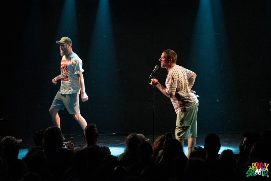 Janky Smooth was there the first time Sleaford Mods performed in the United States, with a headlining show at the Echoplex in 2017 with Terminal A supporting. Back then, it was such an avant-garde outsider form of post punk, it felt fresh to the ear and body and generated so much well-deserved hype among fans chanting, “Sleaford Mods, Sleaford Mods, Sleaford Sleaford Sleaford Mods.” The singer, Jason Williamson, had such a strange, off-beat, Misfit performance style that people had to categorize the music as some form of punk simply because it did not fit anywhere else besides spoken word. Meanwhile, the instrumentalist responsible for the group’s infectious beats and vibe, Andrew Fearn, just hangs in the back, drinking beers one by one, real casual. Williamson describes the Sleaford Mods genre as electronic munt minimalist punk-hop rants for the working class, and that description vibes with their sound just as much as their onstage antics.