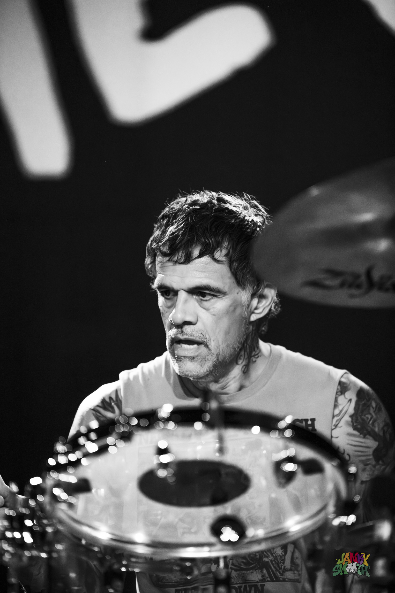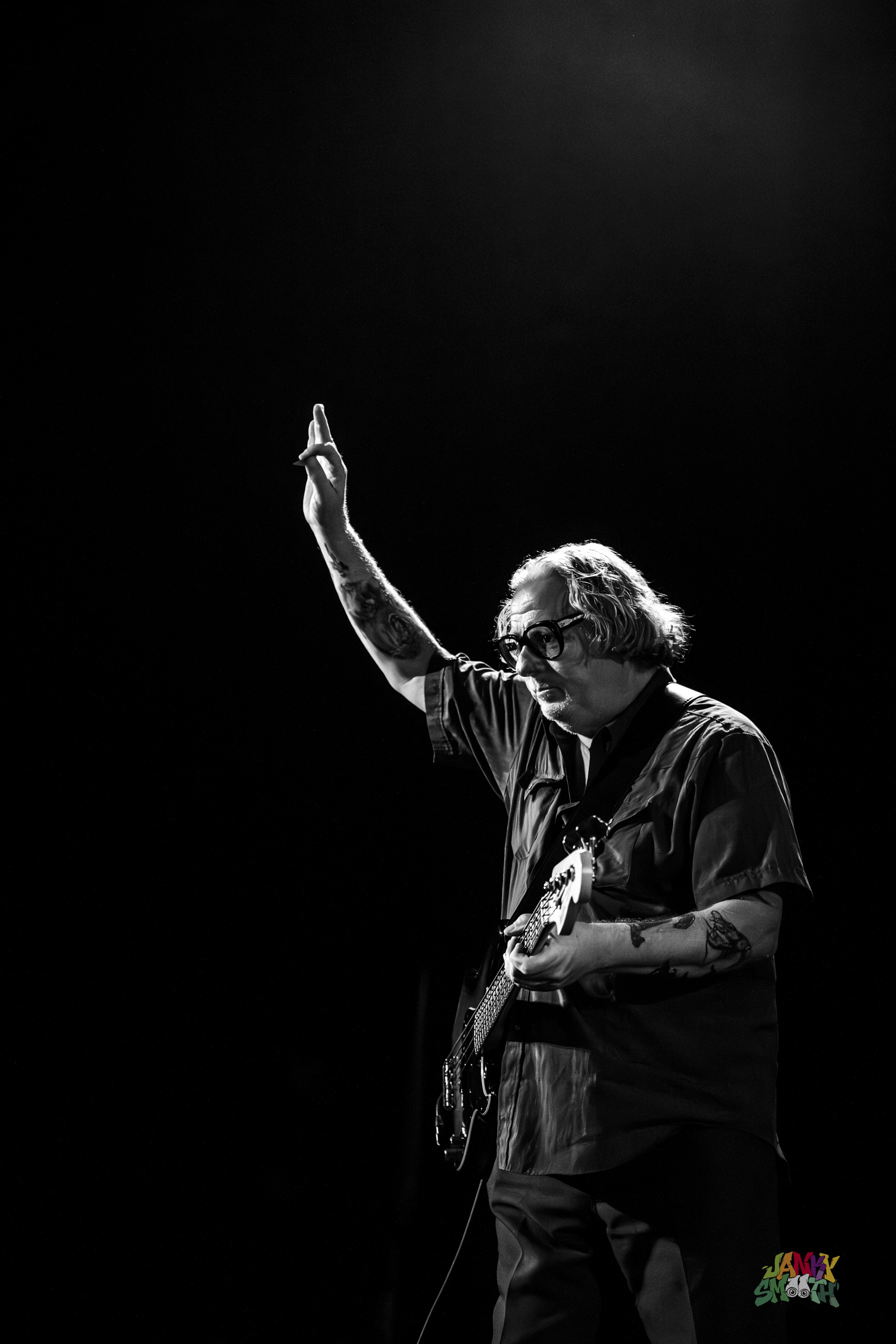 Zander Schloss has been holding down bass duties in the Circle Jerks on and off for decades, and he’s one of those musicians you almost take for granted until you really start watching him. He’s the secret glue. His playing is never flashy, never showboating, but he fills every crack in the wall of sound that Hetson and Morris build. Zander’s tone has this throaty punch to it- round, deep, and absolutely locked to the drums-that gives the songs that bounce and swagger. He’s not just a bassist in the punk sense, where you follow the guitar and keep time. He’s melodic in a way that adds color to these otherwise blunt-force songs. Watching him Friday night, it was obvious he hasn’t lost a step. He moved with ease, dropped in little fills where they belonged, and carried himself with the calm confidence of someone who’s been doing it longer than half the people in the room have been alive- and STILL loves doing it.