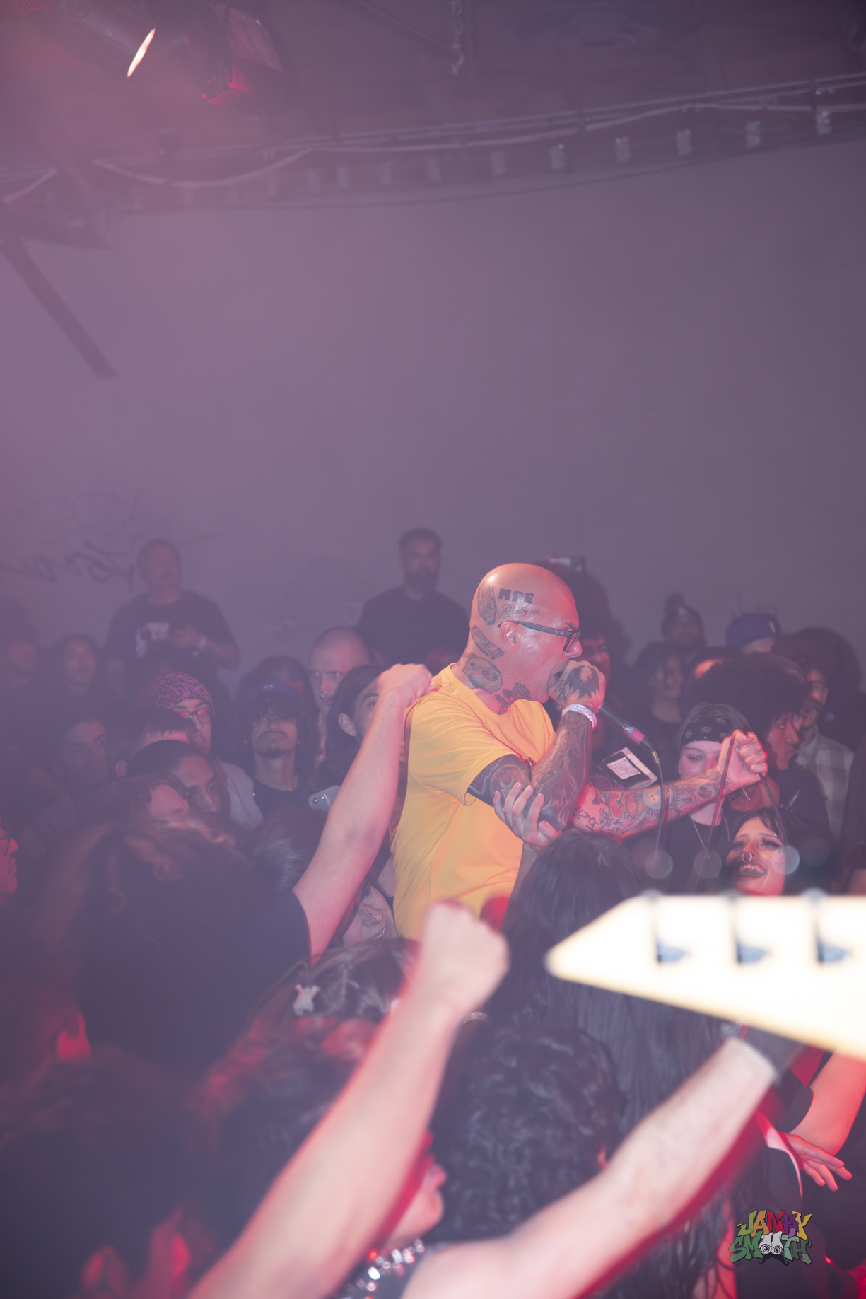 GOLPE one of the rarer (and groovier) bands on the bill, coming all the way from Milan, Italy and absolutely tearing the stage apart as frontman Tadzio Pederzolli thrashes around like a banshee and dives into the crowd like it’s second nature for him. GOLPE definitely had more of an old-school edge to them than some of the experimental explosions of noise we would hear later in the night, but they were just as heavy as any of the bands on the lineup with their classic punk attitude and chaos they brought to the stage. We’ve seen them around these parts quite a bit the last couple years. Seems like Nacho and Nothing Less book them to play anytime they can and we thank them for that.