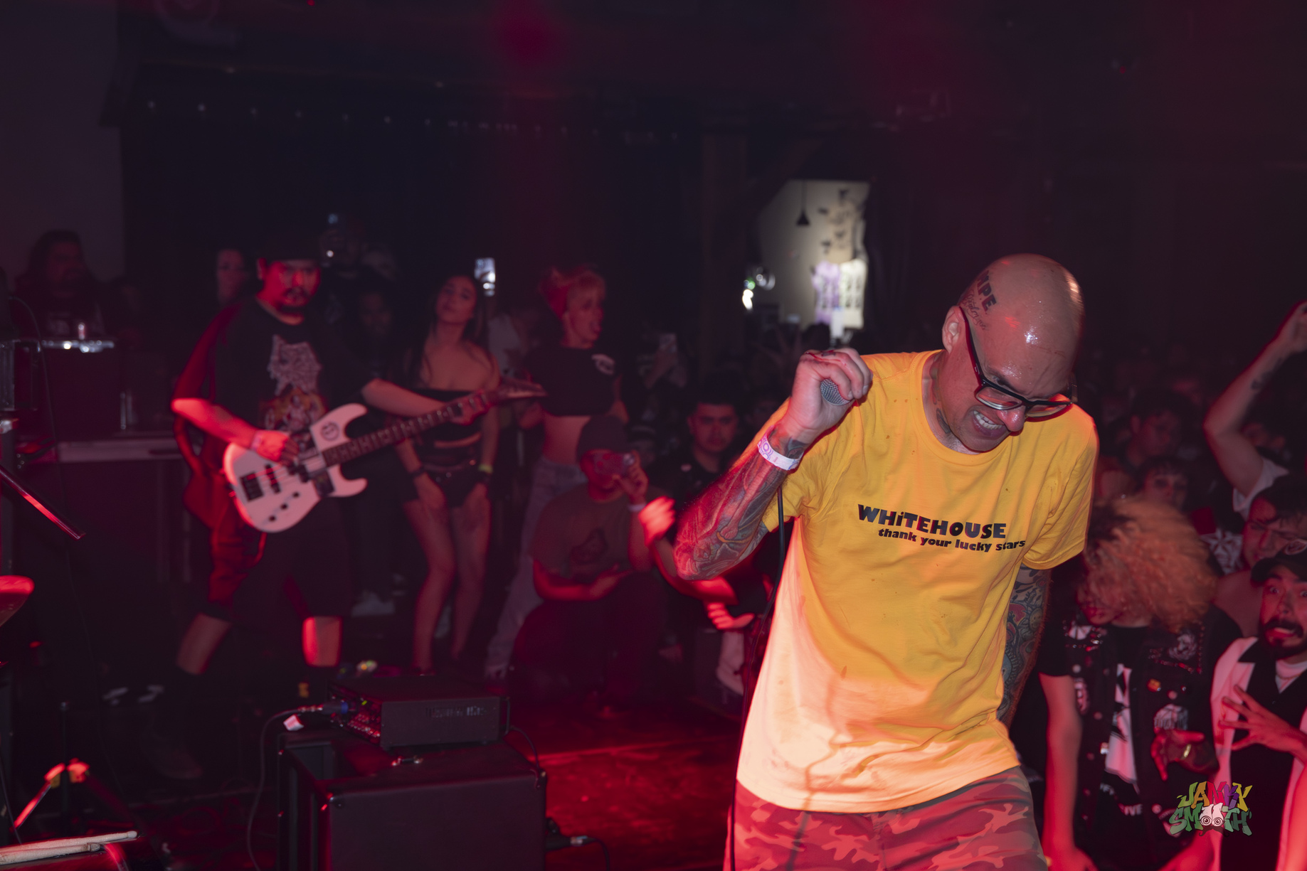 Hong Kong Fuck You (HFKY for short) are among the leaders in blazing this trail, and their dedication to the art of noise is so unique in the modern landscape that LA’s staple promoter for the rare vinyl side of hardcore punk, Nothingless Booking, decided to host a mini-festival at 1720 Warehouse on November 7, 2025 around this concept. It was an absolutely stacked bill including Azusa’s powerviolence legends ACxDC, the recent reunion of 90’s Ohio powerviolence greats Apartment 213, LA’s current landmark band for backyard and independent shows Desmadre, and many more. JankySmooth was there to cover the evening of ear-blistering chaos, and we couldn’t imagine a better celebration for the long-needed return of harsh noise to hardcore punk.