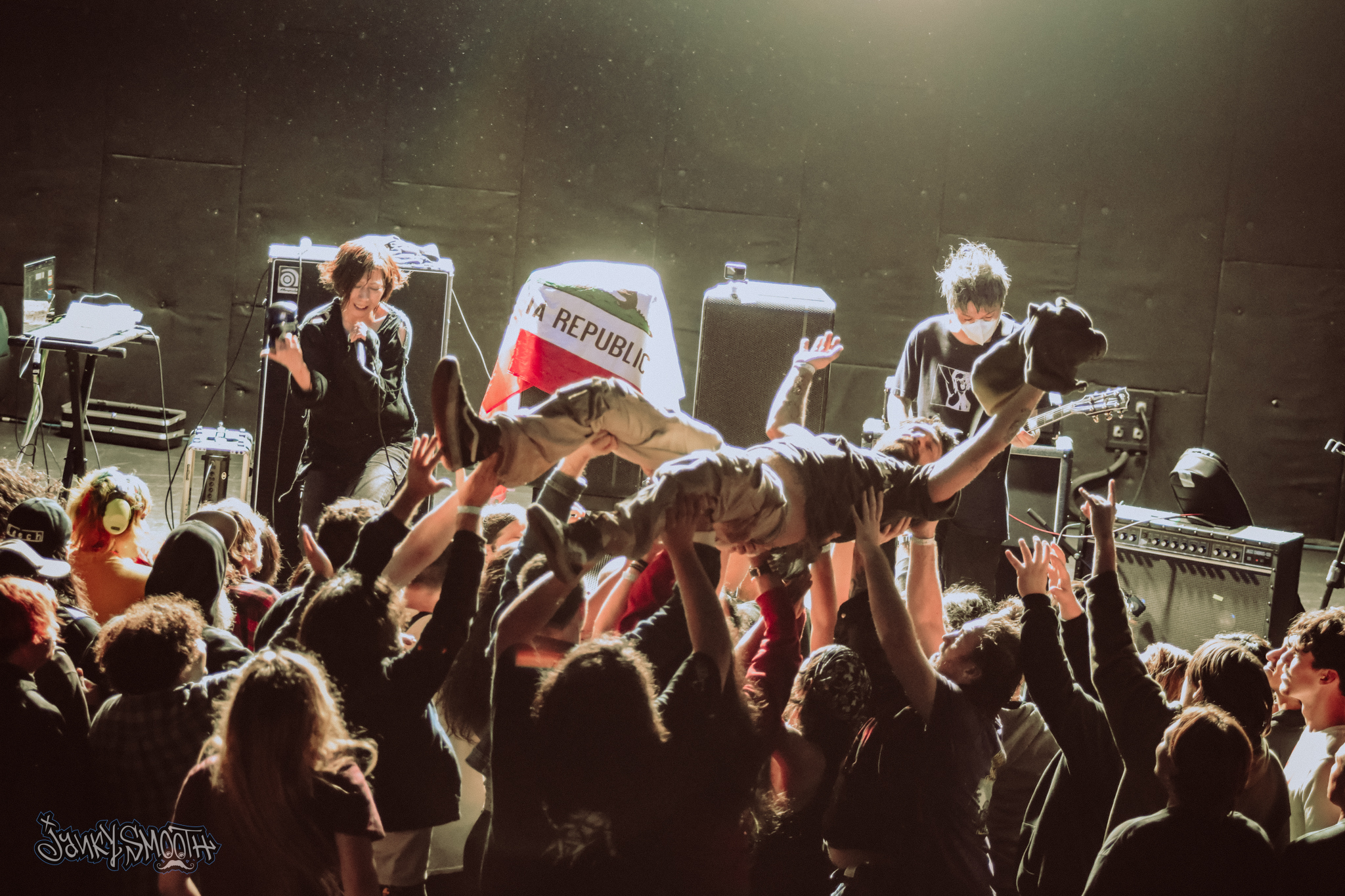 In that very moment, the crowd had transformed into one erratic organism, lifting a girl up on stage effortlessly, allowing her to drape a California Republic flag on an amplifier nearby, before jumping back into the commotion. A clash of distortion accompanied by hardcore components produced by Agata had left the audience in a complete energy trance.