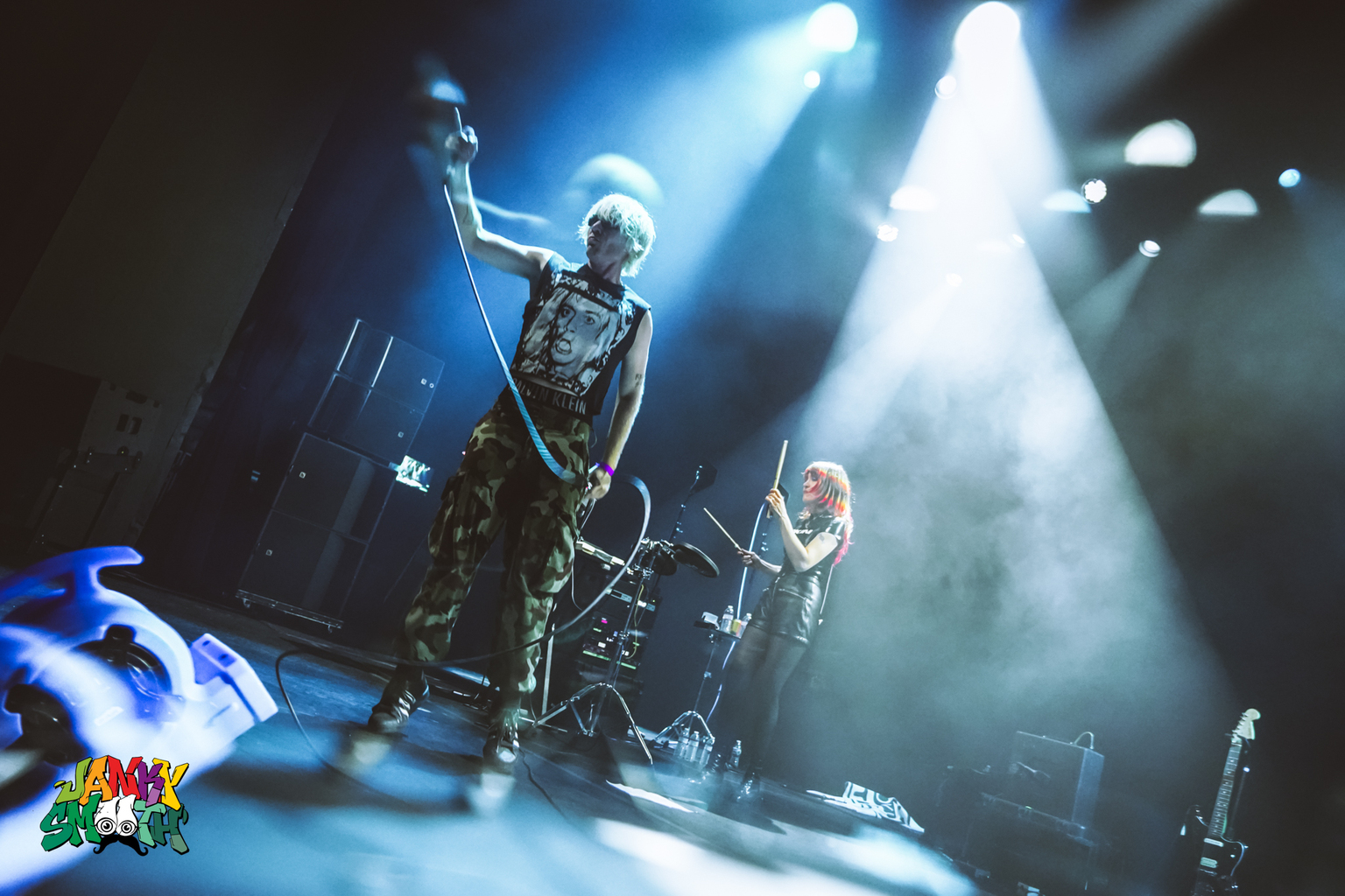 They blended post-punk guitars, EBM bass lines, electro-clash attitude, and pure punk urgency with zero downtime. Drummer and founding member Melissa Scaduto was a machine. The synths were vicious. Brady Keehn vocals cut through the room like a riot cop teaching a Zumba class. It wasn’t just tight; it was surgical.