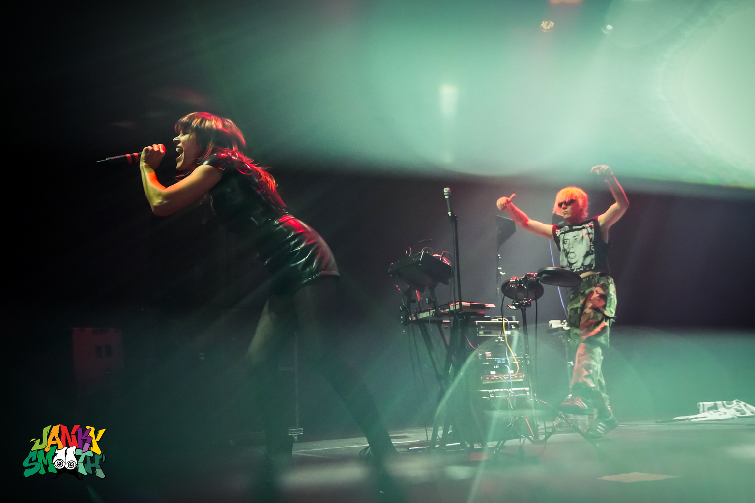 From there, it was a breakneck sprint through their discography. “Disco” came early and hit like a truck. “Contortion” turned the crowd into a bouncing mass. “Women Respond To Bass” had the energy of a late-night warehouse rave in 1992 crossed with the aggression of a hardcore show in 1984.